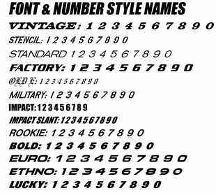 19mil thick pre-printed name and numbers. Plastics are not included. NOTE: There is NO returns since all product is Custom made to order. Made in the U.S.A.